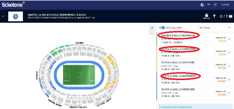 IL portale di TicketOne ha lanciato la vendita dei biglietti dei settori superiori del Maradona per la gara di ritorno dei quarti di finale di Champions League Napoli- Milan.
