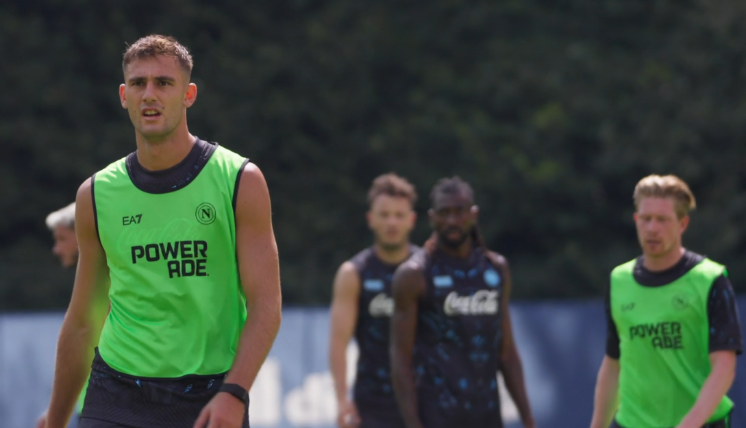 La squadra ha invece svolto esercitazioni tattiche con il classico attacco contro difesa a una sola porta con Meret tra i pali. Applausi e cori per De Bruyne dopo la realizzazione di un gran gol.