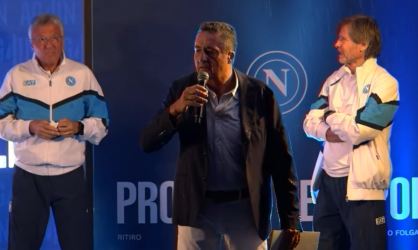 Quando Lombardo con lo staff di Conte sale sul palco parte la contestazione dei tifosi presenti che, sotto una pioggia incessante, ha contestato al capo della comunicazione del club partenopeo l’inizio alle ore 21:00 mentre era in programma alle ore 20:30.