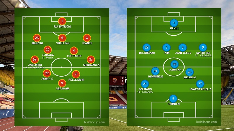 Le probabili formazioni. Due dubbi per parte: Mario Rui-Olivera e Politano-Lozano per Spalletti, Zalewski-Karsdorp e Camara-Matic per Mourinho.