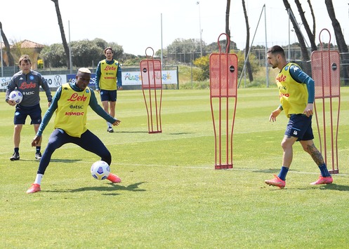 Allenamento mattutino per il Napoli all’SSC Napoli Konami Training Center di Castel Volturno.