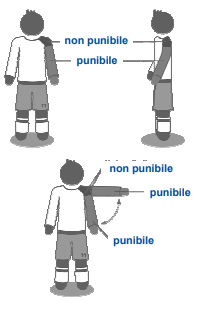 Al fine di determinare un fallo di mano, il limite superiore del braccio coincide con la parte inferiore dell’ascella e il contatto è punibile solo se avviene al di sotto dell’ascella.