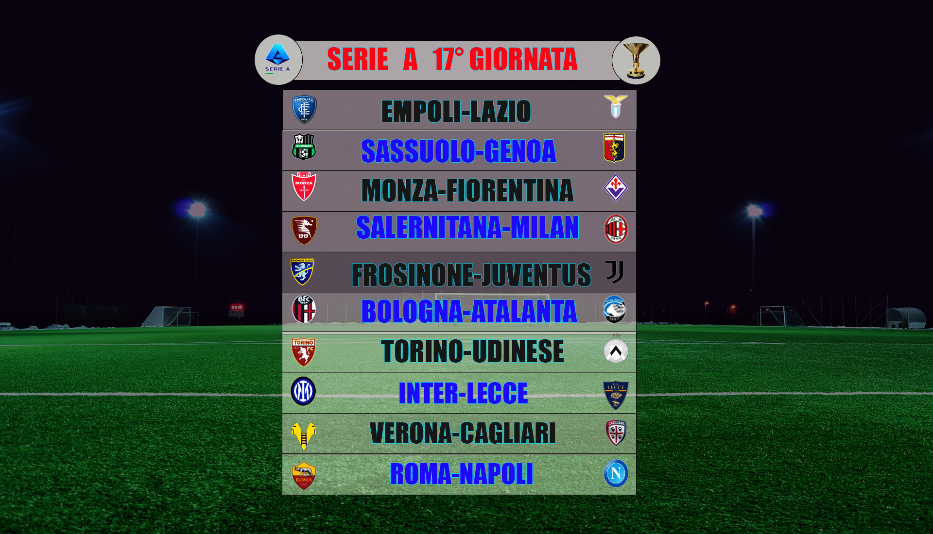 Penultima partita del 2023 della Serie A con le partite della 17° giornata del campionato 2023-24.
