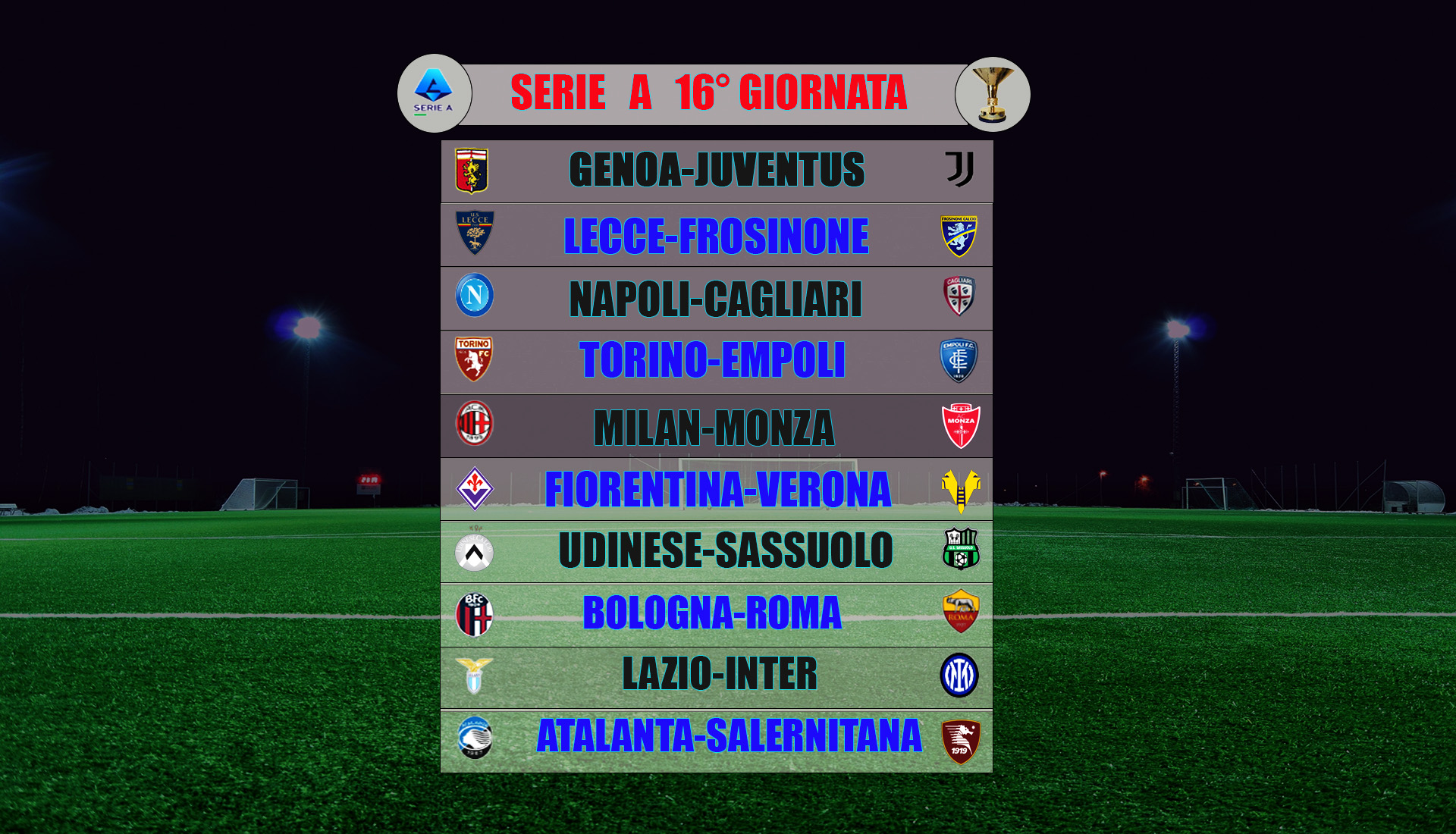 Con il monday night Atalanta-Fiorentina si è chiusa la 16° giornata del campionato di Serie A