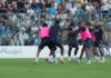Dopo l’allenamento sul campo numero 3 lontano da occhi indiscreti, la squadra si è presentata al suo pubblico sul campo principale per una partitina a campo ridotto 11 contro 11 sempre a due tocchi per esercitarsi sul pressing, l’intensità, lo smarcamento e il controllo palla.